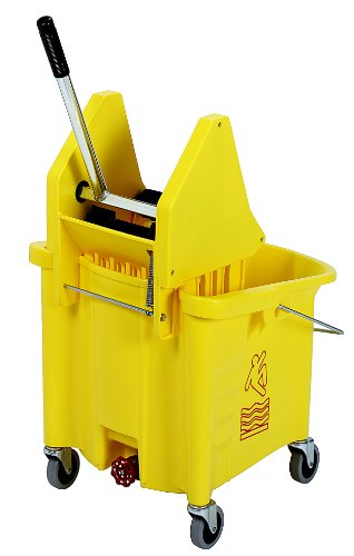 !9# Continental 336-37YW Yellow 35 Quart Splash Guard BackSaver Mop Bucket with SW7 Down-Press Wringer